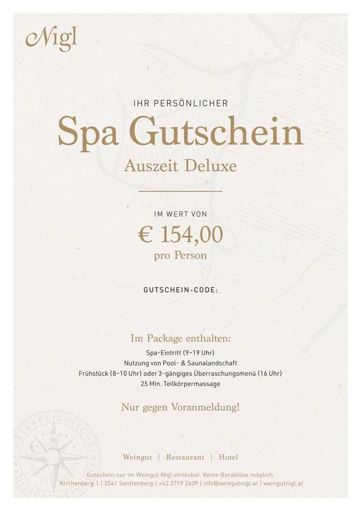 - SPA GUTSCHEIN AUSZEIT DE LUXE - 154 € pro Person