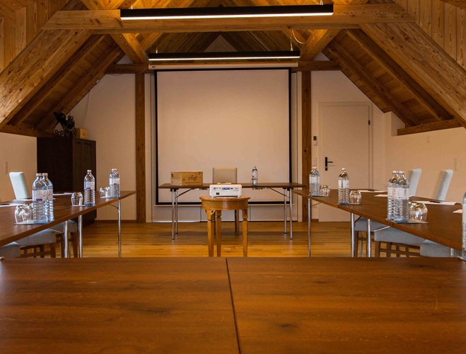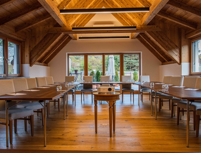 Der helle klimatisierte Seminarraum mit Terrassenzugang ist in U Form, als Klassenzimmer, als Block und als Sesselkreis möglich und für bis zu 25 Personen geeignet.