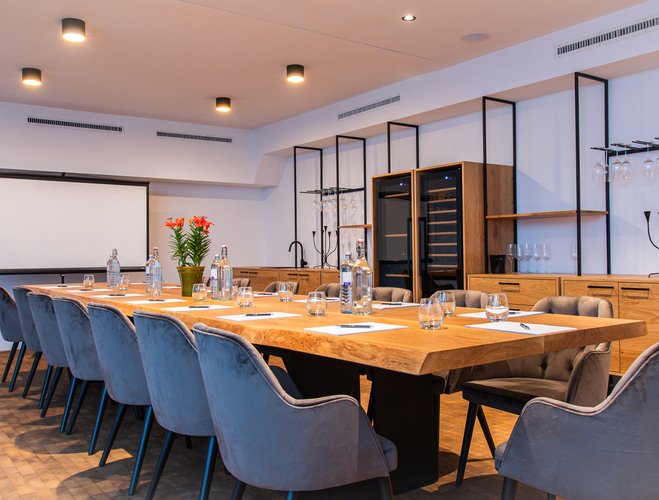 Unsere neu gestalte Vinothek eignet sich optimal für Besprechungen und kommunikative Seminare für bis zu 14 Personen.