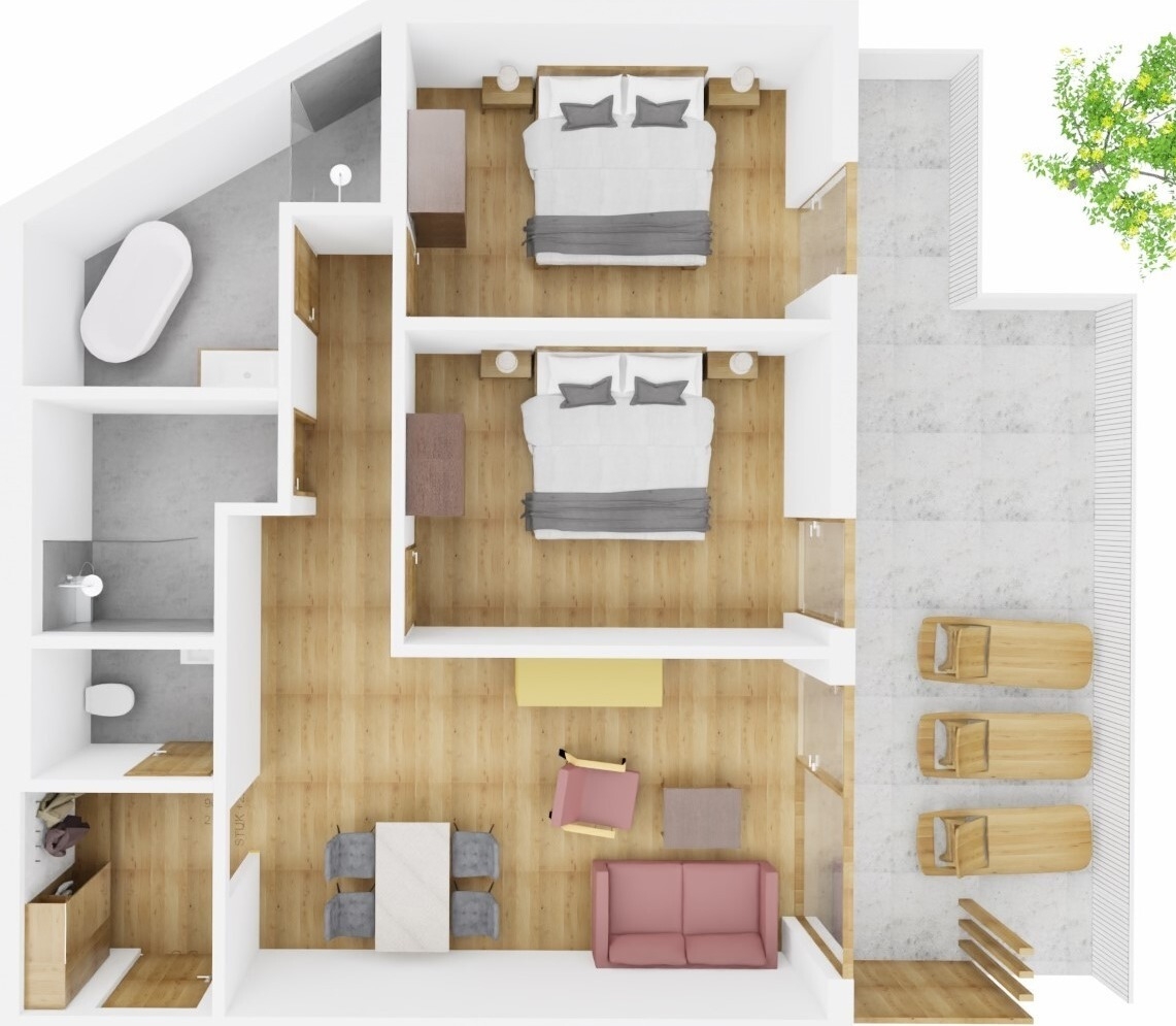 - € 580,- / Nacht / Wochenendpreis für 3 Personen