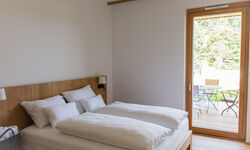 Weitblick über das Kremstal, großzügiger Wohnbereich Boden und Möbel aus Eiche, gemütliches Bett mit 25 cm Taschenfederkern Matratze, Schreibtisch, Fernseher, heller Raum mit breiter Fensterfront, angenehmes Raumgefühl mit Fußbodenheizung und Deckenkühlung, Badezimmer mit Dusche, Badewanne und geräumiger Ablage, separate Toilette.