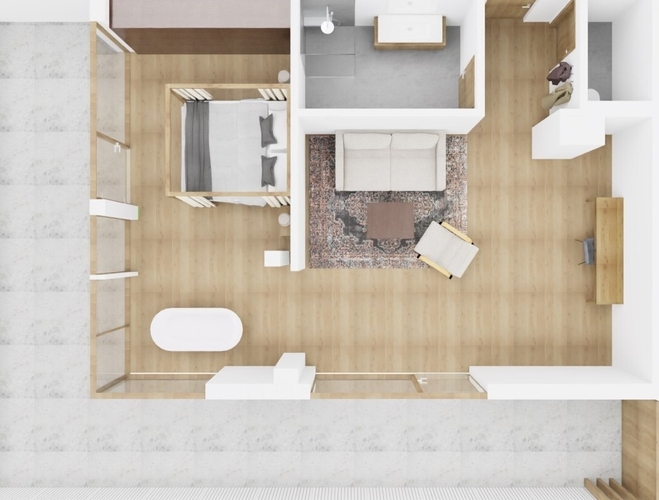 - Badewanne im Raum + eigenes Badezimmer mit Dusche