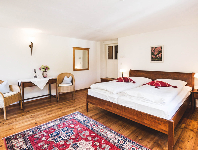 Wände, Holz- und Steinfußböden, Deckenbalken und Gewölbe im Hotel Nigl sind zum Teil original erhalten. Auf der einen Seite die erlebbare Tradition der historischen Substanz, die auf der anderen Seite zeitgemäß, stilsicher und funktionell mit einer modernen Lobby mit offenem Kamin, 7 geräumigen Doppelzimmern – alle mit Klimaanlage, TV und anderen Annehmlichkeiten ausgestattet – verbunden ist.