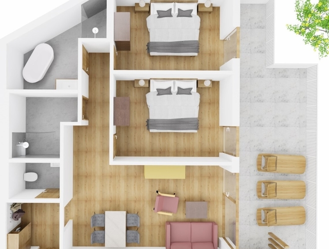 - € 580,- / Nacht / Wochenendpreis für 3 Personen